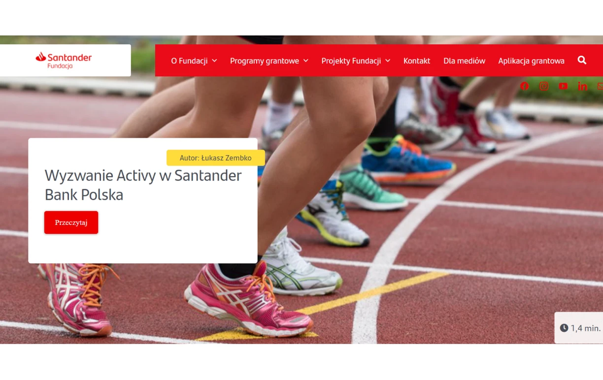 Santander Bank Polska colabora con Activy desde 2019, implicando a sus empleados en retos deportivos vinculados a un objetivo solidario. Es un proyecto único que ha pasado a formar parte de la cultura de la empresa. A lo largo de los años ha evolucionado y actualmente funciona bajo el nombre de Santander Ayuda.
